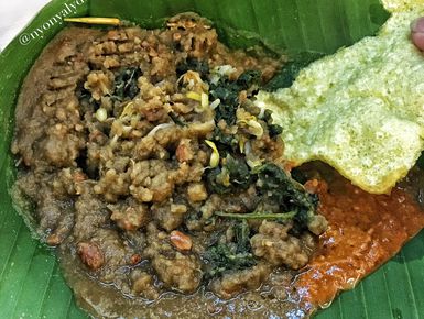 - Ulek semua bahan bumbu kacang petis hingga halus. Tambahkan sedikit demi sedikit air hingga bumbu kental.