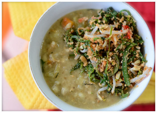 Biasanya, bubur ini disantap bersama lauk bernama “anyang” yang dibuat menggunakan bermacam jenis rempah. Untuk menjaga rasa dan aroma khas dari makanan ini, pembuatannya pun masih menggunakan tungku kayu bakar dan dimasak selama tiga hingga empat jam.